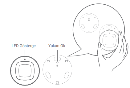 Push the base in the direction of the arrow. (Figure 1) Remove the sealing film to open the motion sensor and the device will enter the warm-up state. The blue LED will flash for 30 seconds and then turn off, indicating that warm-up is complete. ( Figure 2)