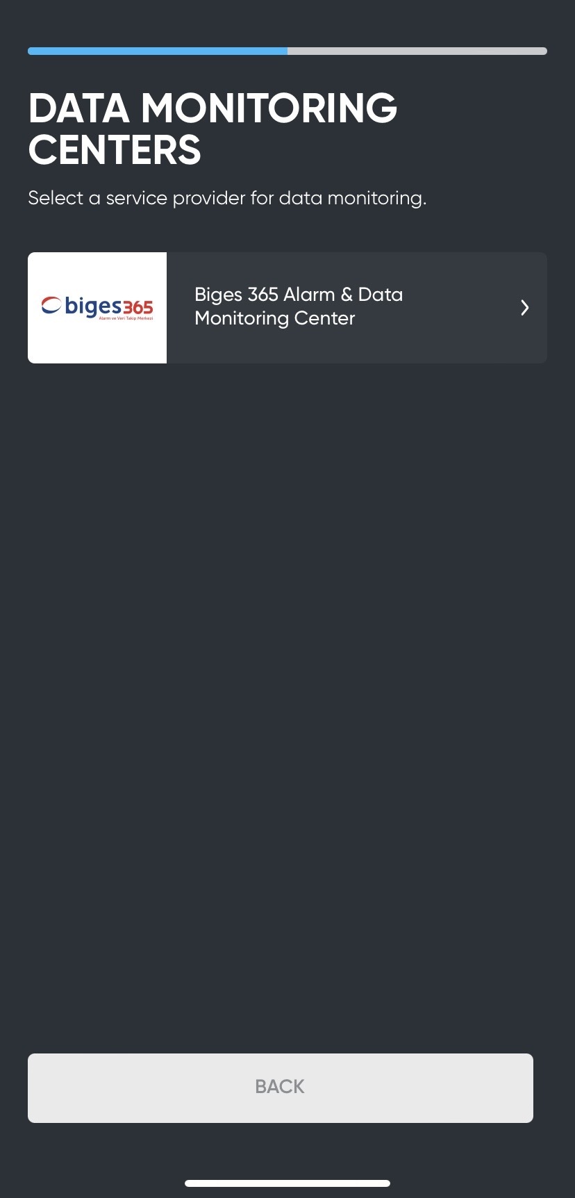 Please select the Biges 365 Alarm & Data Monitoring Center
