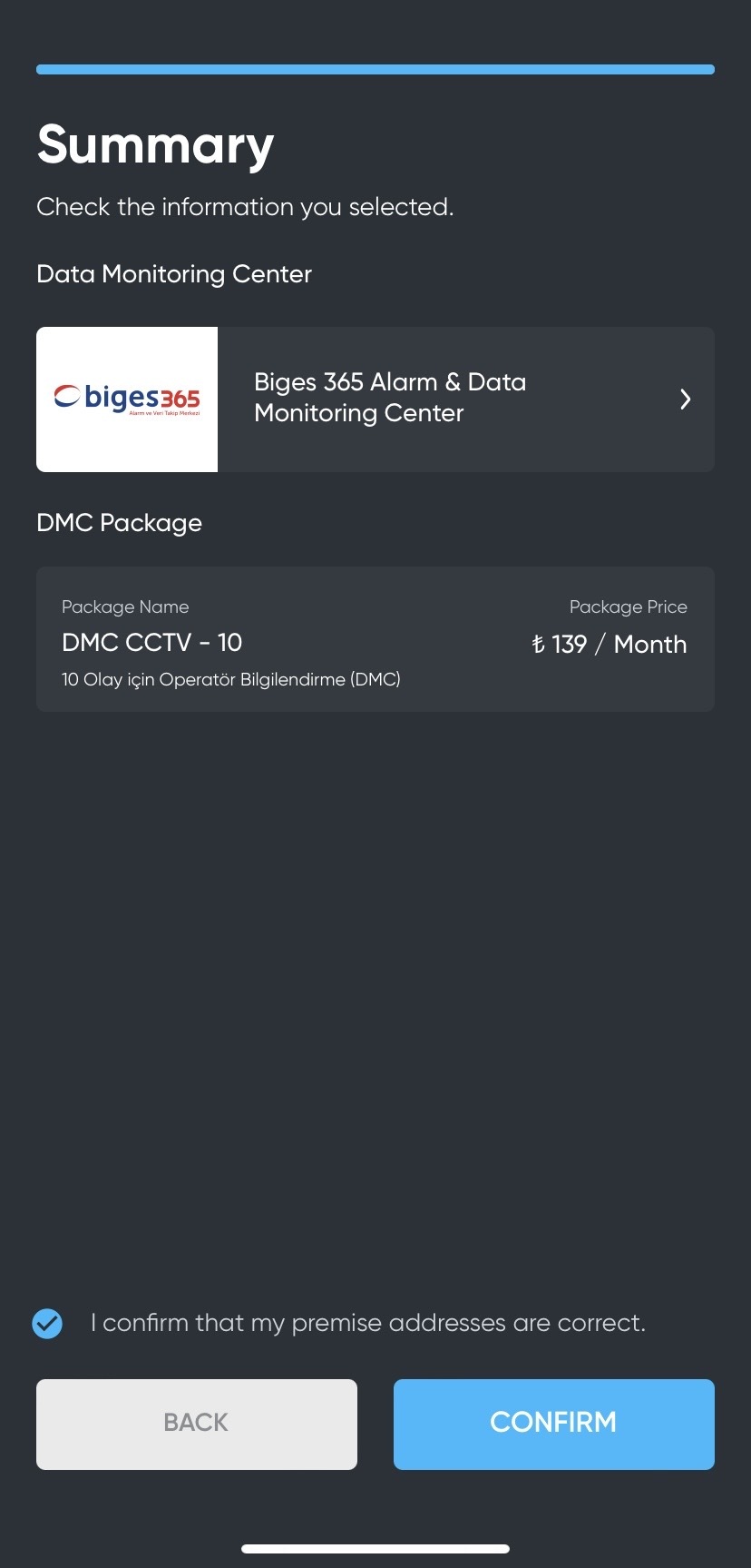 Check the subscription package you have selected and continue by tapping the confirm button.