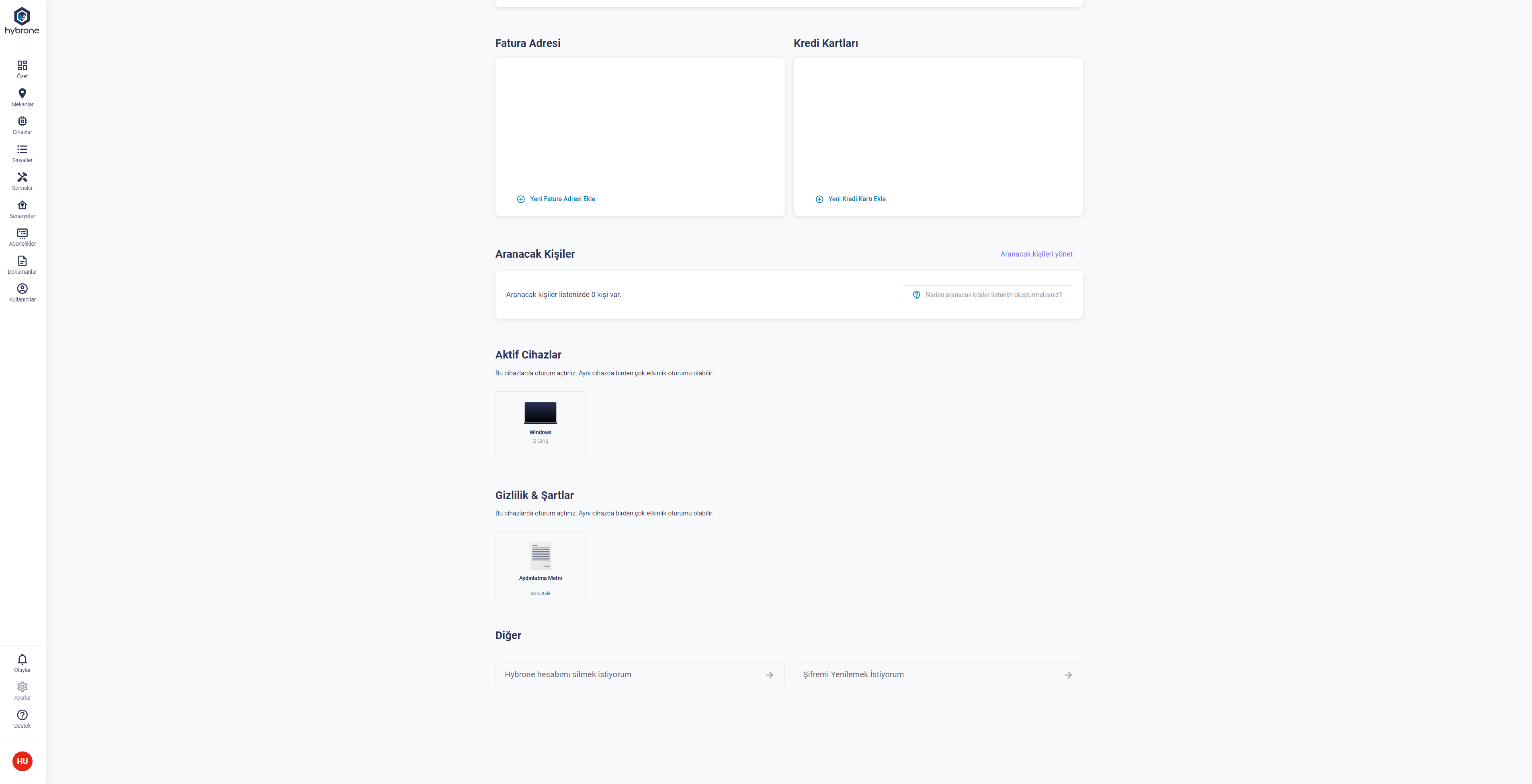 https://my.hybrone.com/ adresine e-posta ve şifreniz ile giriş yaptıktan sonrasında ekranın sol en alt kısmında bulunan İsim - Soyisim