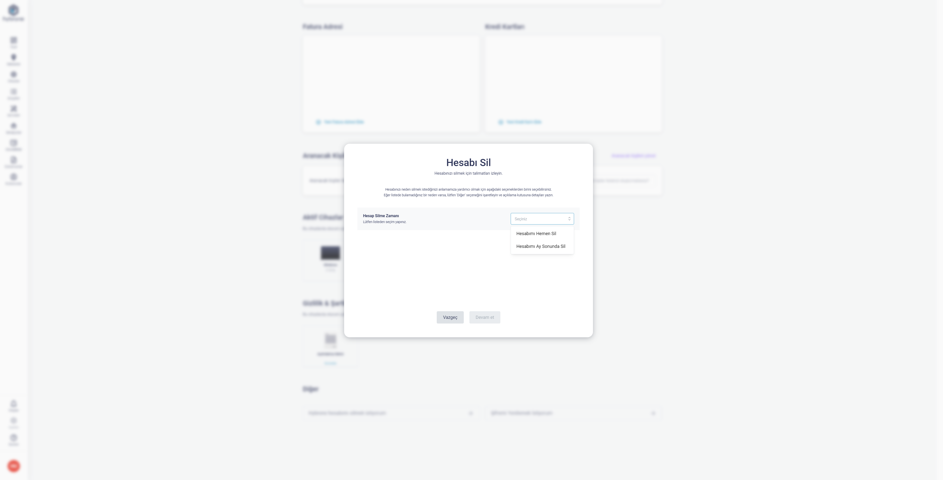 Hesabımı Hemen Sil ve Hesabımı Ay Sonunda Sil seçeneklerini tercih edebilirsiniz.