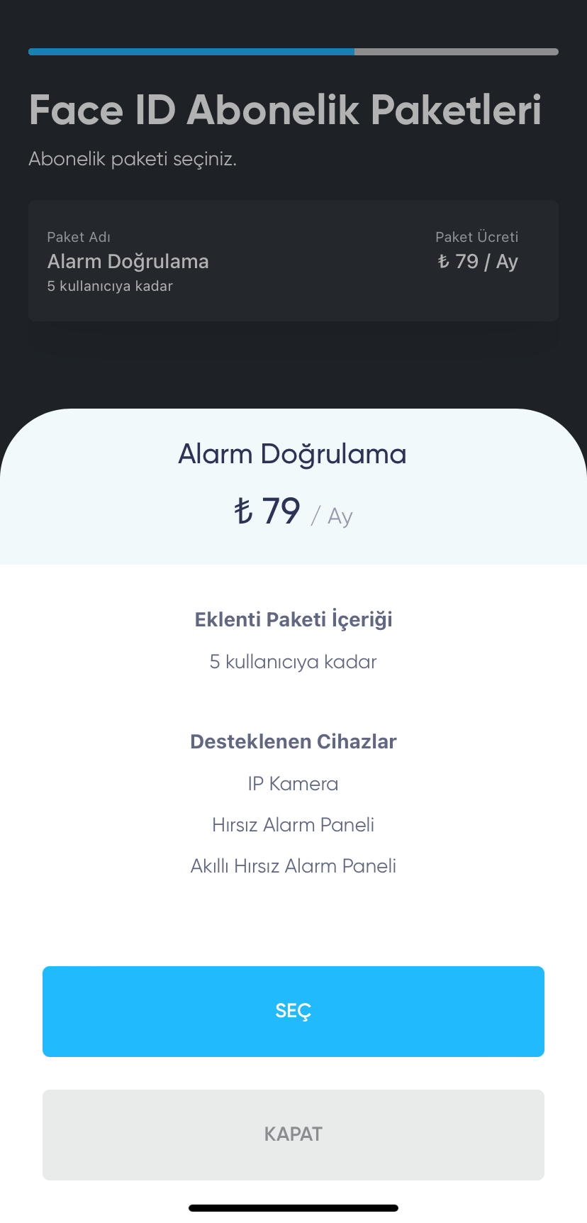Seçtiğiniz abonelik paketini kontrol edin ve onayla düğmesine dokunarak devam edin.